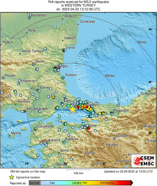 즉각적인 피해 보고는 없었지만 인구 1600만 명의 튀르키예 최대 도시 이스탄불과 주변 지역에서는 놀란 사람들이 건물 밖으로 뛰쳐나왔다고 외신들은 전했다.