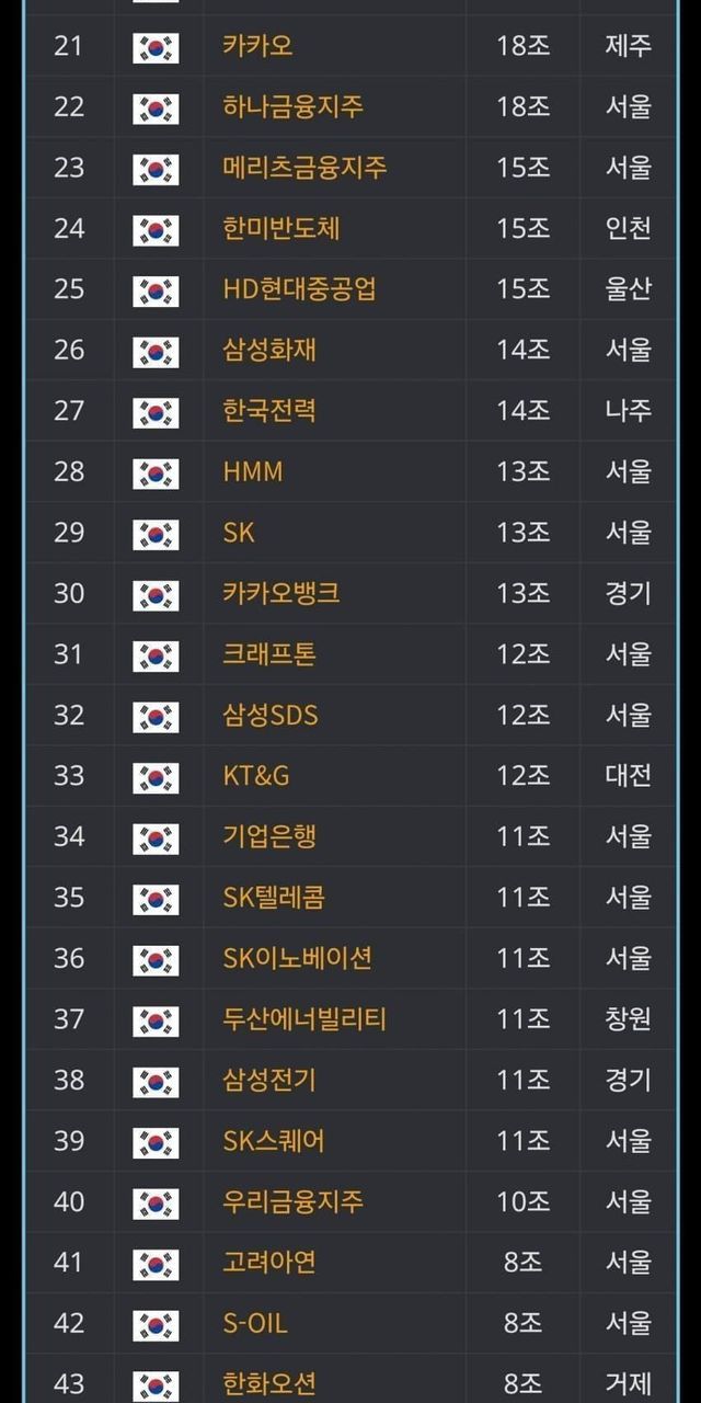 국내 시가총액 50대 기업중 광주에 본사를 두고있는 회사는 단 한개도 없다.