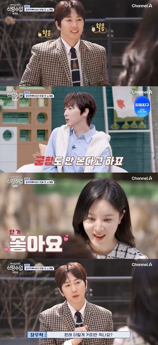 23일 방송된 채널A '요즘 남자 라이프-신랑수업'(이하 '신랑수업')에서는 장우혁이 심진화, 고우리가 주선한 소개팅에 나서는 모습이 그려졌다.