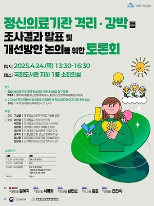 이 토론회에서는 전체 정신의료기관의 현황과 국가인권위원회의 20개 기관 조사 결과를 함께 검토한다는 계획이다.