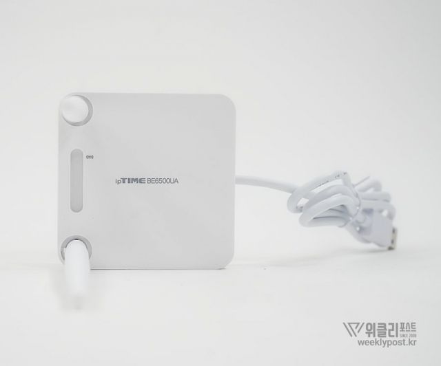 외관은 아이피타임 브랜드의 전통을 이어받은 화이트 톤의 미니멀하고 깔끔한 디자인으로, 고급스러우면서도 심플한 느낌을 준다. 고성능 네트워크 장비답게 견고한 플라스틱 소재를 사용하여 내구성도 뛰어나 장기간 사용에도 안정감을 제공한다. 기존 아이피타임 랜카드보다 다소 큰 느낌이지만, 성능 대비 사이즈를 감안하면 충분히 수긍할 수 있는 크기이다.