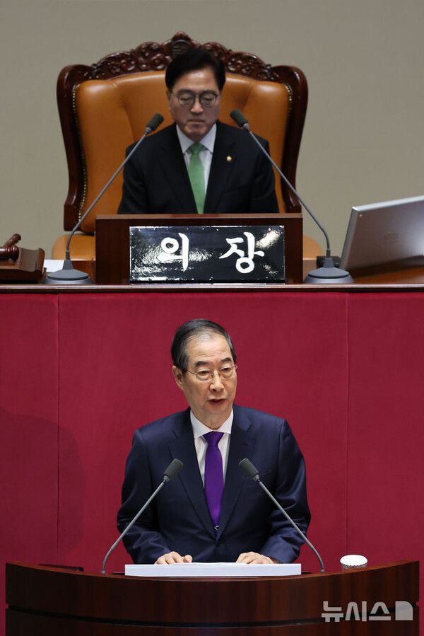 한편 한 대행은 윤석열 전 대통령이 재임 중이던 지난해 11월 국무총리로서 2025년도 예산안 대통령 시정연설문을 대독한 바 있으나, 대통령 권한대행으로서 시정연설에 나서는 것은 이번이 처음이다.