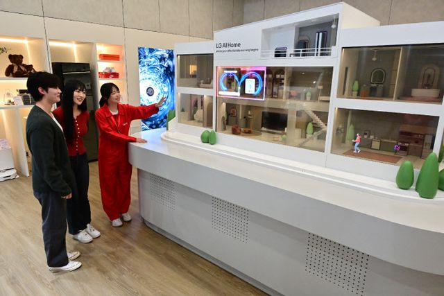 거실과 부엌, 세탁실 등 집을 연출한 ‘LG AI홈’ 구역에서는 날씨에 맞는 옷을 추천하고 씻을 때 적절한 수온을 자동으로 맞춰주는 등 AI홈으로 편리해진 3인 가족의 일상을 미니어처 모형 집과 투명 올레드로 만들어진 디오라마로 보여준다.