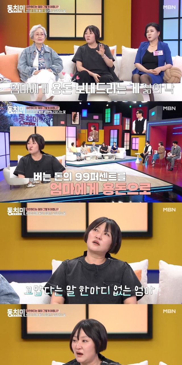 23일 MBN '속풀이쇼 동치미' 측은 '배우 김현숙, 엄마 용돈으로 버는 돈의 99%를 보내도 고맙다는 말을 들어본 적이 없다?!'라는 제목의 선공개 영상을 게재했다.