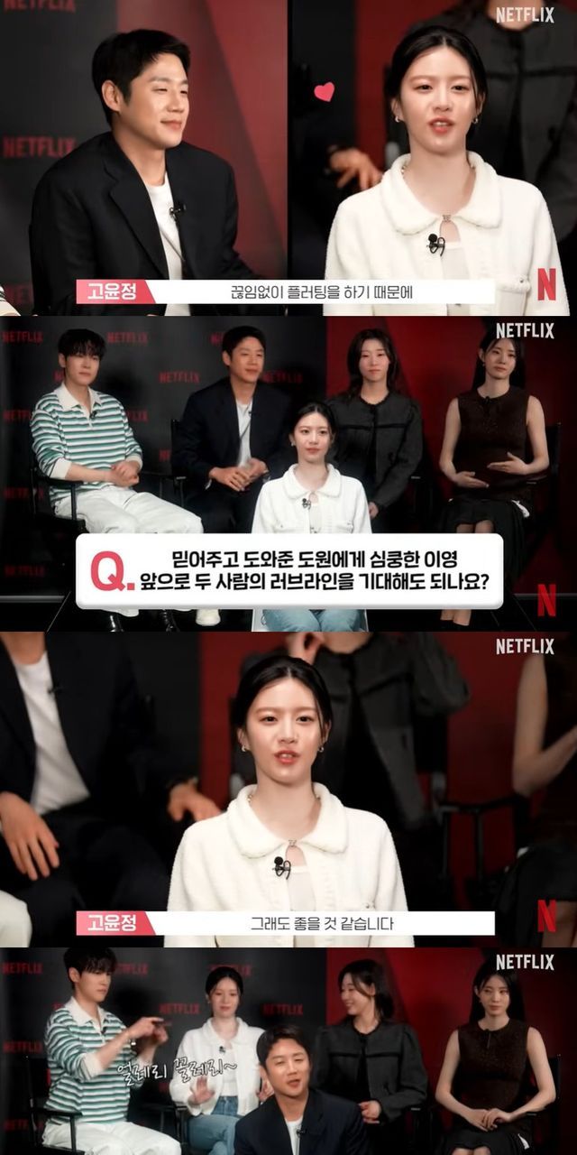 이에 강유석이 "잘 먹고 잘 살아라 둘이"라고 하자 고윤정은 "감사합니다"라고 답하며 정준원을 향한 애정을 뽐냈다.