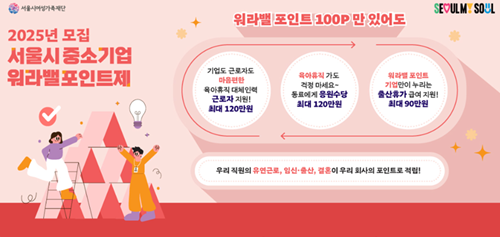 서울시는 저출생 문제해결을 위한 ‘탄생응원 서울프로젝트’의 일환으로 지난해 6월 ‘중소기업 워라밸 포인트제’를 도입, 중소기업의 일·생활 균형 문화 확산에 힘쓰고 있다. 육아친화적 기업환경을 조성하고 중소기업 근로자의 출산 및 육아부담을 줄이기 위해서이다.