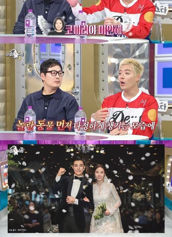 강남은 "근데 상화 씨가 '코끼리야 미안해~ 강남 오빠가 장난쳤지? 미안해'라고 하더라. 여기서 가슴이 두근두근렸다. 동물한테 따뜻하게 대하는 모습에 결혼을 결심했다"라고 덧붙였다.