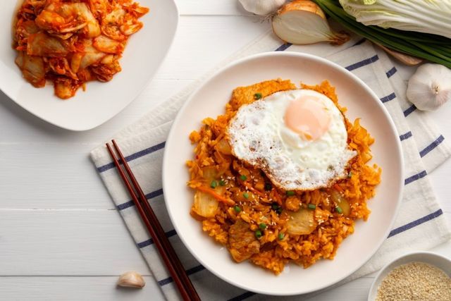 김치볶음밥을 고슬고슬하게 만들려면 따끈한 밥보다는 하루쯤 지난 찬밥이 더 적합하다. 갓 지은 밥은 수분이 많아 팬 위에서 금세 뭉치고 눌어붙기 쉽다.