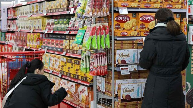 마트에서 과자를 고르는 시민들 / 뉴스1
