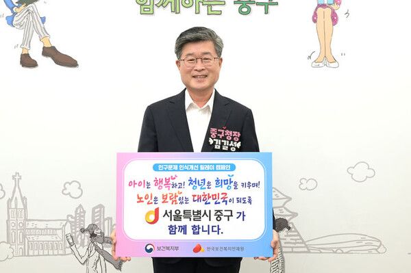 김길성 서울 중구청장이 지난 23일 저출산·고령화 문제에 대한 사회적 인식을 높이기 위해 '인구문제 인식개선 릴레이 캠페인'에 참여했다고 24일 밝혔다.