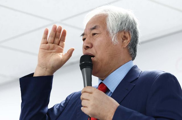전광훈 사랑제일교회 목사가 24일 오전 서울 여의도 자유통일당사에서 대선 출마 기자회견을 하고 있다. / 뉴스1