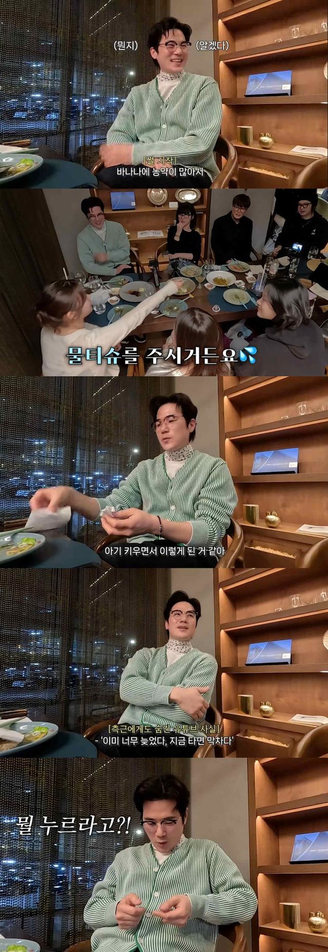 그러자 스태프들은 '바나나'라고 같은 키워드를 언급했다. 늘 바나나를 먹을 때 껍질에 있는 농약 때문에 물티슈를 준다고.
