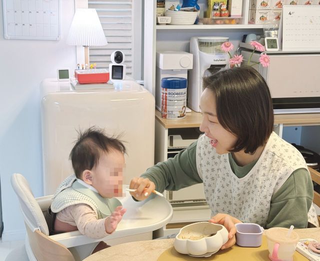 딸은 엄마가 주는 밥을 귀엽게 받아먹고 있어 눈길을 끈다.