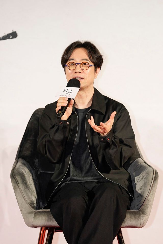 민규동 감독은 ‘파과’의 원작 소설과 영화의 차이점에 대해 “원작 소설은 굉장히 많은 사람들이 좋아하고 있다. 영화는 또 소설과는 다른 법을 취할 수밖에 없었다. 2시간이라는 제한이 컸다. 이야기로는 8부작 이야기만큼 트리트먼트 작업을 다 했다. 영화에서 등장하지 않는 투우의 과거도 에피소드로 다 만들어봤다. 그 정도로 소설은 많은 모티브를 확장시킬 수 있는 것들이 많았다. 한 줄을 한 에피소드로 확장할 수 있을 정도였다. 그런 재미들이 있었다. 소설에서는 주인공들이 이렇게 자주 만나지 않는다. 또 현재와 과거가 한 장면에서 연출되는 비선형적인 플롯을 취했다. 현재 이야기 안에서 과거 이야기가 등장해야하는 독특한 연출 방식을 취해봤다”라고 말했다.