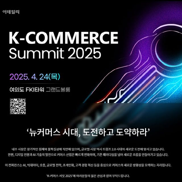 이익원 이데일리 대표는 “AI와 글로벌화를 중심으로 뉴커머스 시대에서 우리가 직면한 도전 과제를 분석하고 성공 전략을 모색해야 한다”며 “K-커머스 서밋은 각 분야 전문가들의 통찰과 아이디어가 새로운 도전에 대비하고 지속 가능한 성장을 이루는 데 큰 힘이 될 것”이라고 말했다.