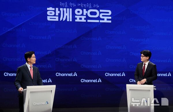뉴시스 보도에 따르면, 한 후보는 이날 오후 서울 종로구 채널A 스튜디오에서 열린 2차 경선 '일대일 맞수 토론회'에서 김 후보에게 "법치를 말씀하셨는데, 과연 대통령이라는 법치의 상징을 기본적인 수칙을 지키지 않은 사람이 할 수 있나"라고 했다.