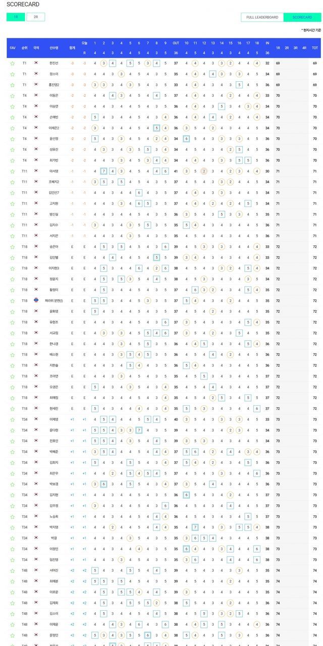 T1.한진선-정소이-홍진영2 -3, T4.이동은-이승연-손예빈-이채은2-윤선정-성유진-최가빈 -2, T11.마서영-조혜지2-김민선7-고지원-방신실-김지수-서지은 -1, T18.송은아-김민별-이지현3-정윤지-황정미-짜리위분짠-유현조-배소현-지한솔-조아연-오경은-최예림-현세린 E, T34.이제영-박혜준-최은우-박보겸-노승희-박지영-이정민-임진영 +1, T48.서어진-김재희-문정민-이소영-이가영-강지선-홍현지 +2, T68.서연정-지유아이-박도영-박현경-허다빈-전승희-김수지-기만영-전예성-송가은-김효문-현세린A-김민주-윤혜림-한아름-리슈잉-홍지원 +4, T98.이율린-이정민2-고지우 +5, T102.정지효-김리안-박소혜-빠따랏랏따놘 +6, T111.안선주 +8, 116.장하나 +11, T117.정희원 +13