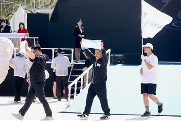[와이뉴스] 수원특례시의회는 24일, 경기도 가평군 자라섬 중도에서 열린 제15회 경기도장애인체육대회 개회식에 참석하여 수원시 기수단과 함께 입장하고 있다.