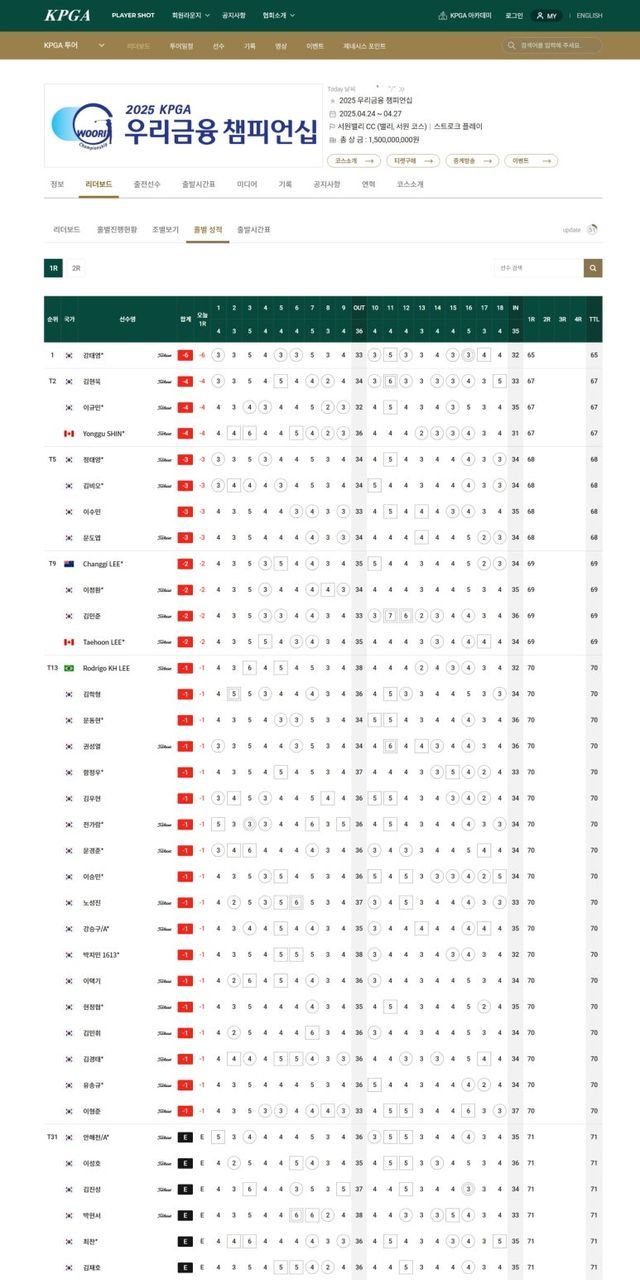 ▲우리금융 챔피언십 1라운드 순위