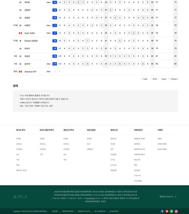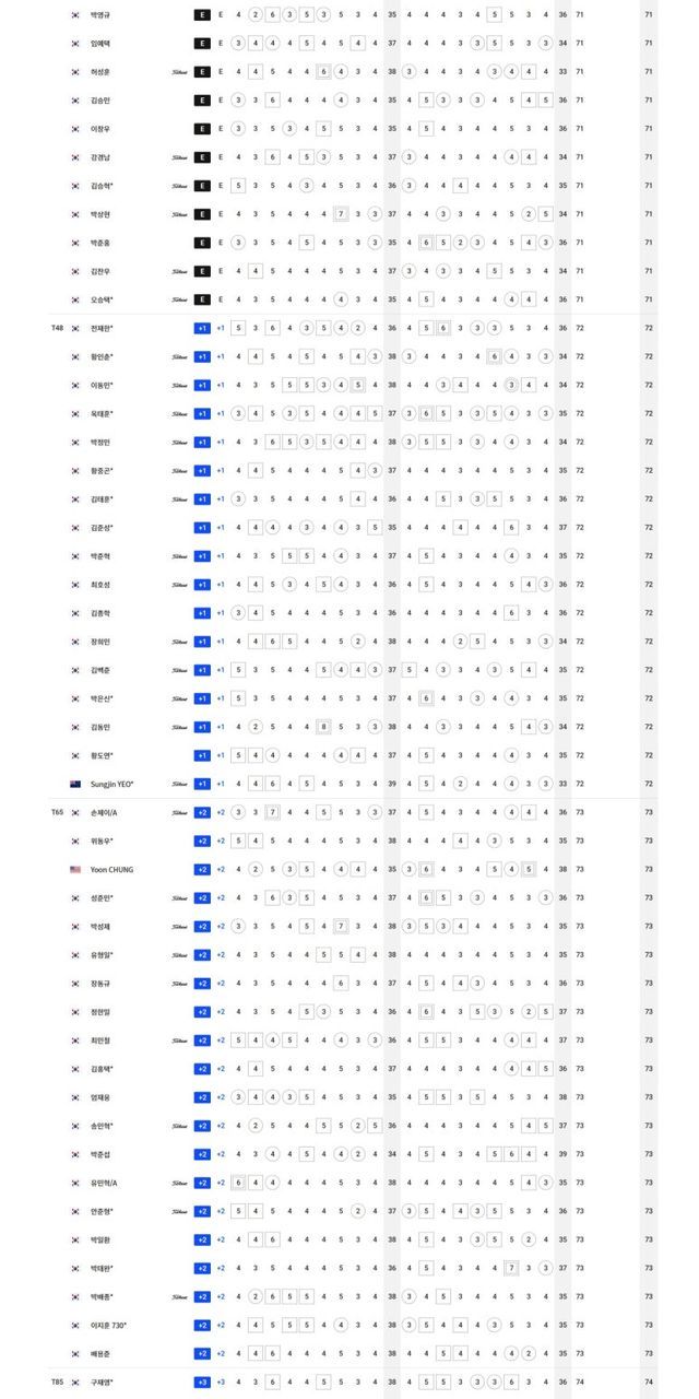 1.강태영 -6,T2.김현욱-이규민-신용구 -4, T5.정태양-김비오-이수민-문도엽 -3, T9.이창기-이정환-김민준-이태훈 -2, T13.문동현-권성열-함정우-김우현-잔가람-문경준-이승민-박지민1613-김민휘-김경태-이형준 -1, T31.안해천A-최찬-임예택-김승민-이창우-강경남-김승혁-박상현-박준홍-김찬우 E, T48.전재한-이동민-옥태훈-황중곤-김태훈-김준성-장희민-김백준-박은신-김동민-황도연 +1, T65.손제이A-정한밀-김홍택-엄재웅-송민혁-배용준 +2, T85.조락현-변진재-조우영-최승빈-김영수-전준형-이원준-이대한-최진호-이태희 +3, T105.정상급-조민규-임성재 +4, T121.김상현-이준석-전성현-김대현 +5, T129.정찬민-김민수-백석현 +6, T138.정순일 +7, T140.와다쇼타로 +8