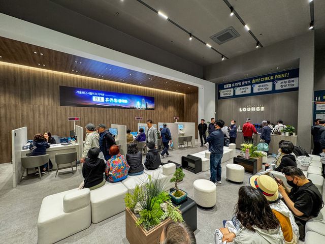 예비 입주자들이 청약 상담을 받기 위해 대기하고 있다. = 김주환 기자