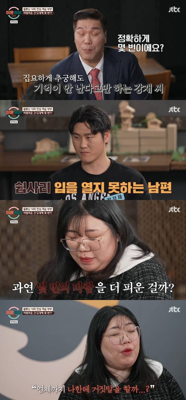24일 방송된 JTBC 예능프로그램 ‘이혼숙려캠프’에서는 머슴 남편이 외도를 저지른 것이 한번이 아님을 인정한 모습이 그려졌다.