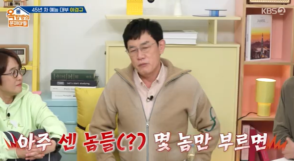 이경규는 24일 방송된 KBS2 예능프로그램 ‘옥탑방의 문제아들’에서 “부담스러워서 후배들 전체에게 청첩장을 주지 않았다”며 “센 놈들만 부르면 된다. (다른 후배들은) 우르르 와서 밥만 먹고 간다”고 장난스럽게 말했다.