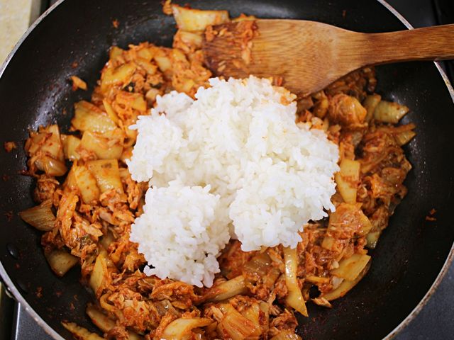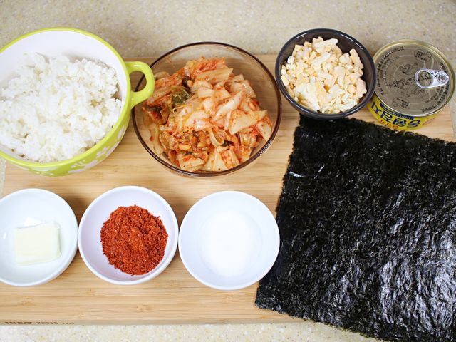 재료는 찬밥, 김치, 모짜렐라치즈, 참치캔,