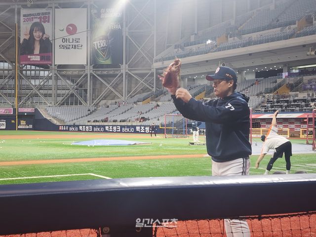 24일 키움전에 이기면 기분 좋은 징크스가 될 수 있었다. 이승엽 감독은 "내일 또 (케이브와 캐치볼을) 하면 좋죠"라고 했다. 그리고 실제로 이뤄졌다. 두산은 25일 홈에서 롯데 자이언츠를 상대한다. 이 감독과 케이브의 캐치볼은 원정 경기보다 조금 당겨져 진행될 것 같다. .
