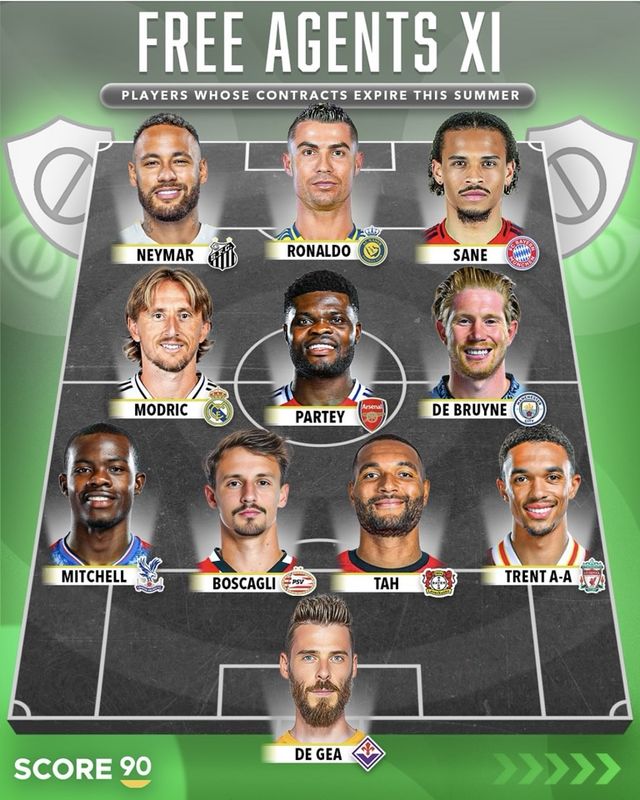 축구 콘텐츠 매체 스코어90은 24일(한국시간) 오는 6월부로 소속팀과 계약이 만료되는 선수들로 꾸린 베스트11을 공개했다.