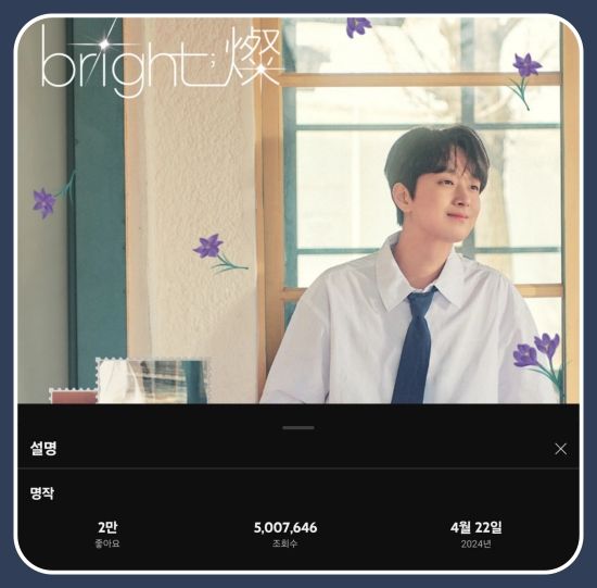 이찬원은 지난 2024년 4월 공식 유튜브 채널 '또튜브'에 두 번째 미니앨범 'bright;燦'의 수록곡 '명작' 음원 영상을 게재했다.