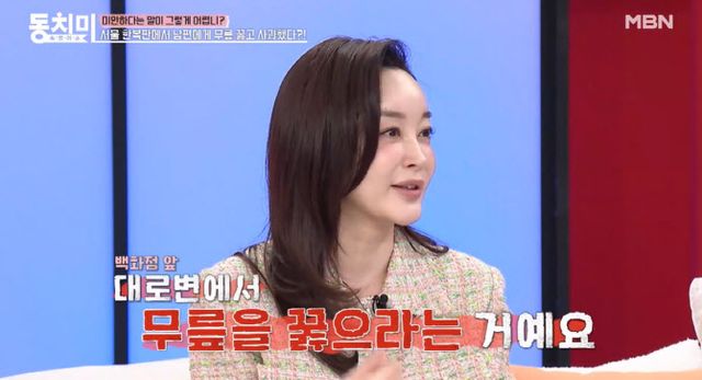 김혜은은 “삼성동 백화점 앞 8차선인데 그대로 걸어가더라. 제가 큰일나겠다 싶어서 잡고 미안하다고 했다. 싹싹 빌었다. 남편이 그때 놓치지 않고 ‘너 앞으로 잘할 거야?’라고 하더라. 제가 ‘잘할게, 잘못했어’라고 했다. 대로변에서 무릎을 꿇으라고 하더라. 사람들 다 있는데”라고 말해 놀라움을 안겼다.