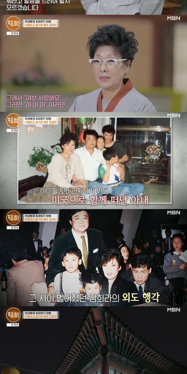 말로 할 수 없는 상처를 준 김희라, 연이은 사업 실패로 술독에 빠져 살다가 뇌졸중이 왔다고. 그의 아내는 "여자, 술, 담배, 나쁜 건 다 한 사람이지 않냐. 지금 몸도 이렇게 됐고, 본인이 혼자 있으면 생각을 많이 하는 것 같다. 지우개가 있으면 지워버리고 싶은 것 같았다"라고 전했다.