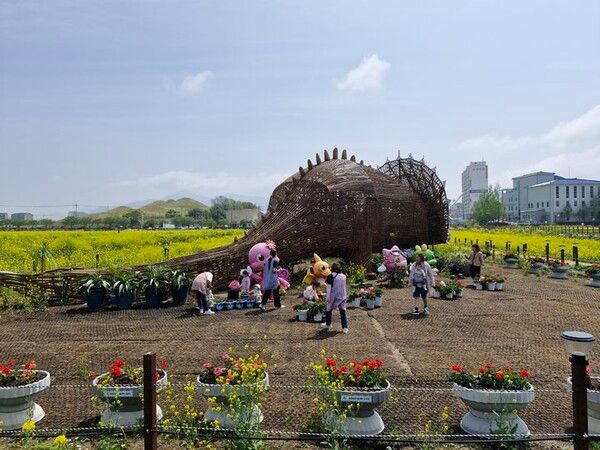 이처럼 풍성한 봄꽃들의 조화는 고성 기월안뜰경관지구의 아름다움을 한층 더 돋보이게 하며 특히 올해 유채는 겨울 내 긴 가뭄을 깨고, 적절한 시기 천금 같은 단비로 장관을 연출하고 있다.