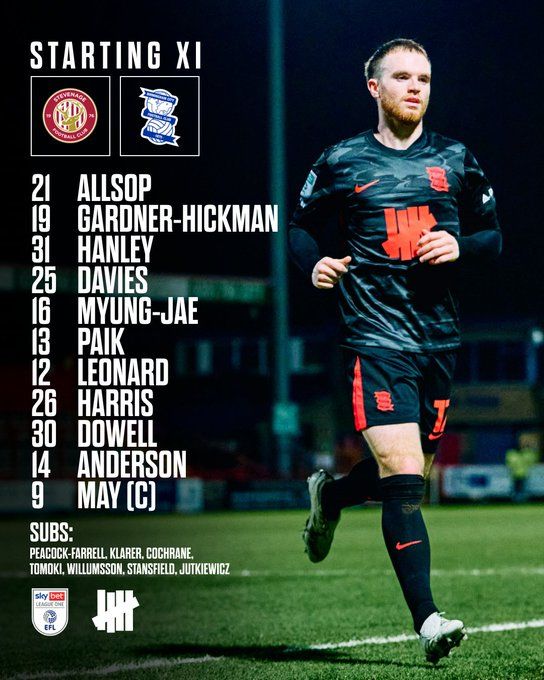 4-2-3-1 전형으로 나선 버밍엄에는 라이넌 올솝 골키퍼가 골문을 지켰고, 테일러 가드너-히크먼, 그랜트 한리, 벤 데이비스, 이명재가 백4를 구성했다. 3선에는 마크 레너드와 백승호가 호흡을 맞췄고, 2선 공겨진에는 키어런 도웰, 루크 해리스, 케시 앤더슨이 최전방 원톱 알피 메이를 보좌했다.