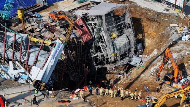 지난 11일 경기 광명시 일직동 신안산선 복선전철 제5-2공구에서 지하터널 공사 현장과 상부 도로가 무너져 작업자 1명이 숨지고 1명이 크게 다쳤다.