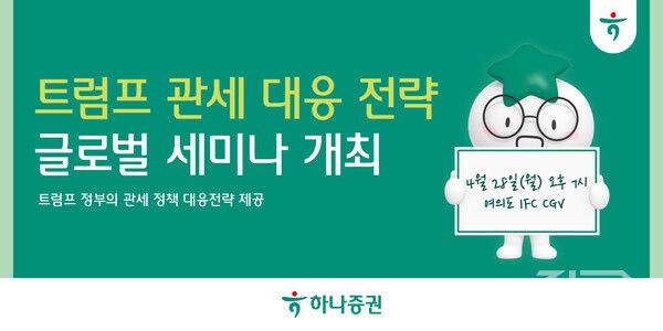 [직썰 / 최소라 기자] 하나증권은 오는 28일 오후 7시부터 여의도 IFC CGV 8관에서 ‘트럼프 관세 대응 전략’ 글로벌 세미나를 개최한다고 25일 밝혔다.