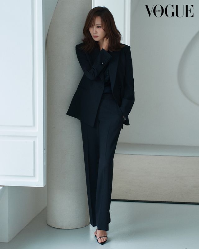 공개된 화보 속 김남주는 특유의 깊이감 있는 눈빛과 우아하고 세련된 무드를 보여주며 일상룩부터 포멀한 비즈니스룩 등 다양한 스타일링을 감각적으로 소화했다. 그녀는 루즈핏의 원피스를 착용해 고급스러운 스타일링을 보여주거나, 루즈핏 블라우스형 자켓과 니트 스커트를 매치해 여성스러우면서도 우아한 룩을 완성했다.