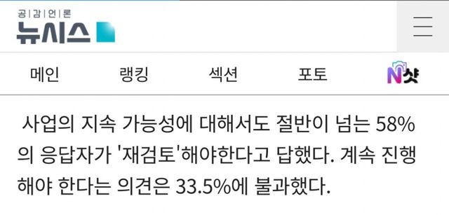 국민 절반 이상 반대에다가 지지 연령층은 60대 뿐