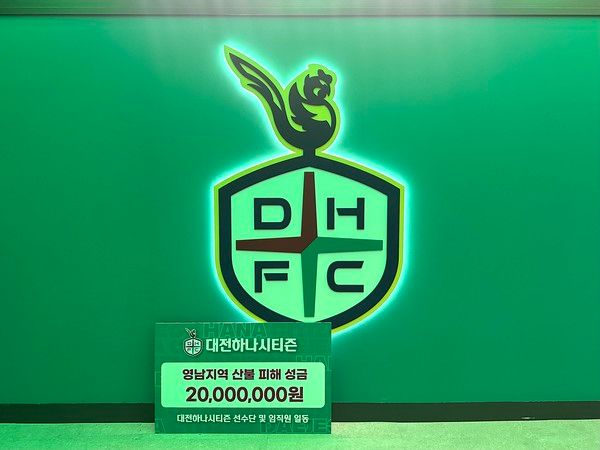 25일 대전은 보도자료를 통해 "영남지역 산불 피해 지역 복구 지원을 위해 대전사회복지공동모금회에 성금 2천만원을 기탁했다"라고 밝혔다. 이번 성금은 대전하나시티즌 축구단 자선경매 수익금과 프로 선수단 자체 모금을 통해 이뤄졌다.