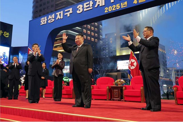 북한 노동당 기관지 노동신문은 2025년 4월 16일 "화성지구 1만세대 살림집 준공식이 지난 15일 성대히 진행됐다"라고 보도했다. 김정은 총비서는 딸 주애와 함께 준공식에 참석했다. / 북한 노동신문
