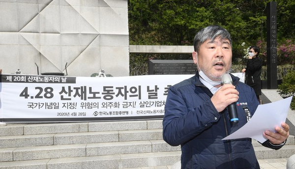 이현재 한국노총 산업안전보건본부 선임차장도 "기념식 준비와 계획 과정에서 산재 당사자와 관련 단체들의 충분한 의견 수렴없이 정부기관 주도 하에 일방적으로 행사가 기획되고 추진됐다"며 "향후 형식적인 정부 행사로 전락할 우려가 있다"고 주장했다.