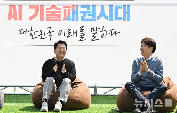 뉴시스 보도에 따르면, 안 후보와 이 후보는 이날 오후 안 후보의 지역구인 경기 성남시 판교역 앞 광장에서 '안철수X이준석, 미래를 여는 단비토크'를 열고 인공지능부터 미국 관세 협상, 리더십 등 과학기술을 매개로 각 분야에 대한 의견을 나눴다.