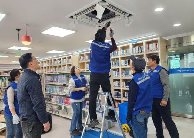 사회공헌단은 4월 한 달간 관내 작은도서관 8곳과 돌봄센터 3곳 등 총 11개 시설을 대상으로 에어컨 청소 재능기부 활동을 펼쳤다.
