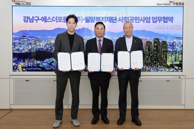 [파이낸셜경제=김예빈 기자] 꿈이 모이는 도시, 미래를 그리는 강남구가 4월 25일, 에스더포뮬러㈜, 밀알복지재단과 3자 업무협약을 체결하고 사회적고립 1인가구를 위한 민·관 협력 복지사업을 추진한다.