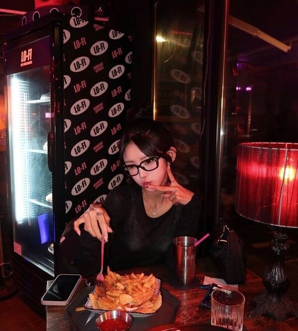 사진 속 최준희는 머리를 하나로 묶고 두꺼운 뿔테 안경을 썼다.