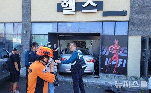 25일 오후 3시35분께 제주시 외도동에서 60대 여성 A씨가 몰던 소나타 승용차량이 헬스장 건물 안으로 돌진했다.