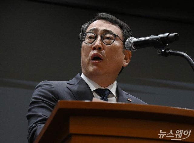 유영상 SK텔레콤 대표가 25일 서울 중구 SKT타워에서 지난 22일 발생한 해킹공격으로 가입자 유심(USIM) 정보가 유출된 것과 관련해 사과문을 발표하고 있다. 사진=이수길 기자 Leo2004@newsway.co.kr