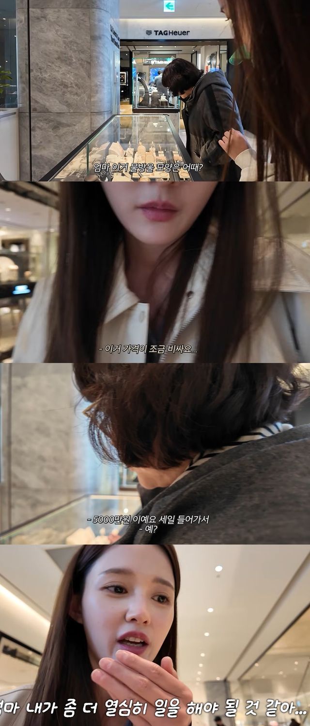 백화점에 도착한 남보라는 보석 매장으로 향했다. 물방울 모양의 다이아귀걸이를 발견했지만 가격이 오천만 원이라는 직원의 말에 남보라는 "엄마. 내가 조금 더 열심히 일을 해야 될 것 같다"며 깜짝 놀라는 반응을 보였다.