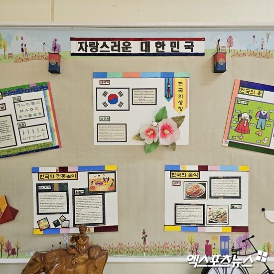 복도 벽면에는 학생들이 그린 그림이 걸려 있었는데 초등학생이 그린 그림이라고는 믿어지지 않을 정도였다. 또한 기념 사진들이 곳곳에 붙어 있어 학생들의 추억도 깃들어 있었다.